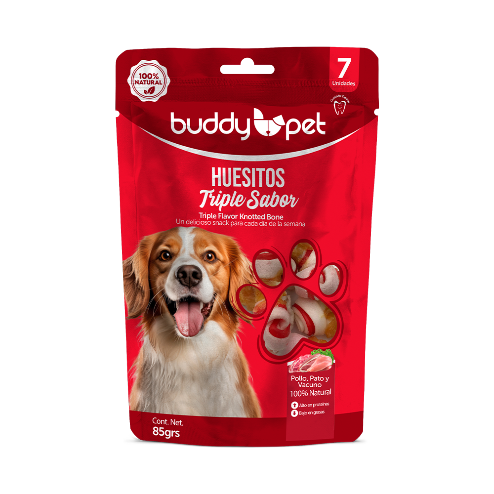 Huesitos para perro mini con triple sabor de pato, pollo y vacuno. Uno para cada día de la semana.